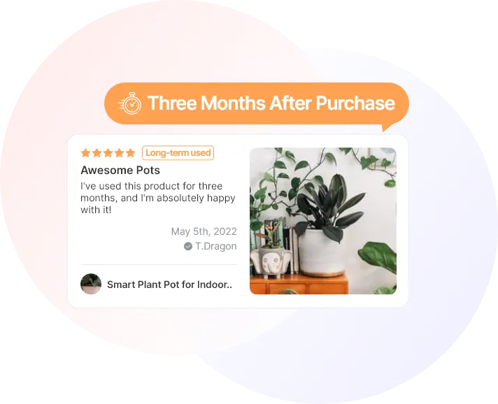 You can decide from when to when to allow long-term reviews. The start date is based on the date of the first review request. Our suggestion is “From 30 days after the date of the first review request, customers can write a long-term review within 60 days”.