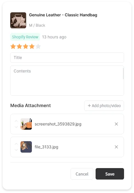 You can edit ratings, titles, contents, photo files, and video files of reviews. However, editing a customer’s review may cause a legal issue. So be careful using it unless the customer includes some sensitive information in the review.
