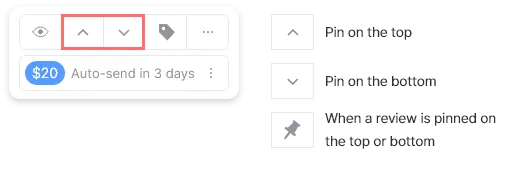 You can pin a review on the top or bottom. Pinned reviews will be fixed at the top or bottom of all reviews on the widget, even if a customer changes the sort order.