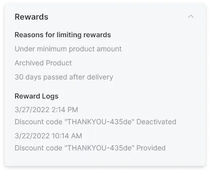 Through “Rewards Information”, you can see the reasons for limiting rewards if it's a reward-restricted review. Moreover, you can view all records of reward payments and recoupments.