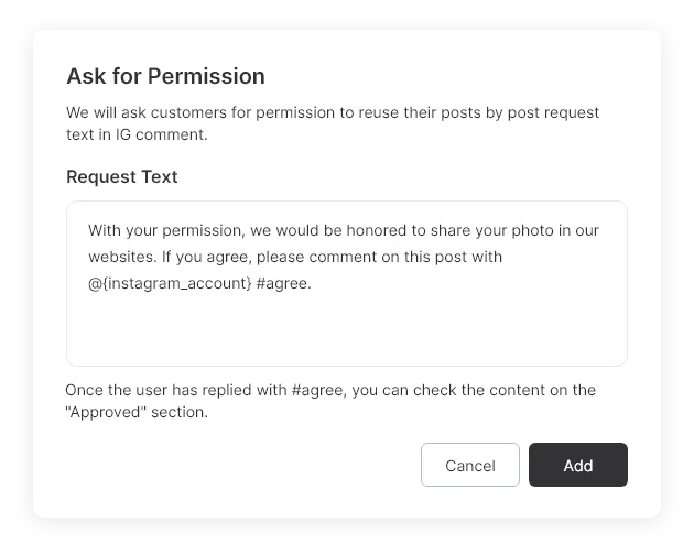 Before you can use the Instagram Curation feature, you must connect your Facebook account that is associated with the Facebook page linked to your Instagram professional account.