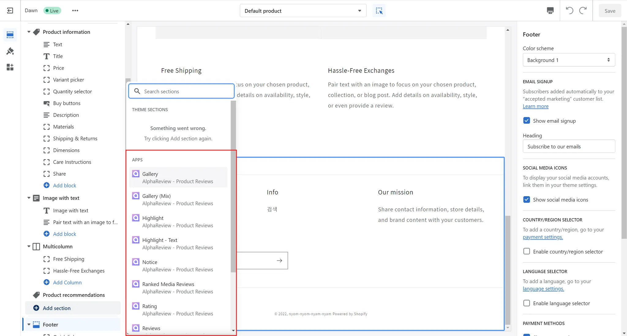 Please note that AlphaReview scripts for Shopify's Theme.liquid will be supported soon. If you encounter any issues, contact our support team for assistance.