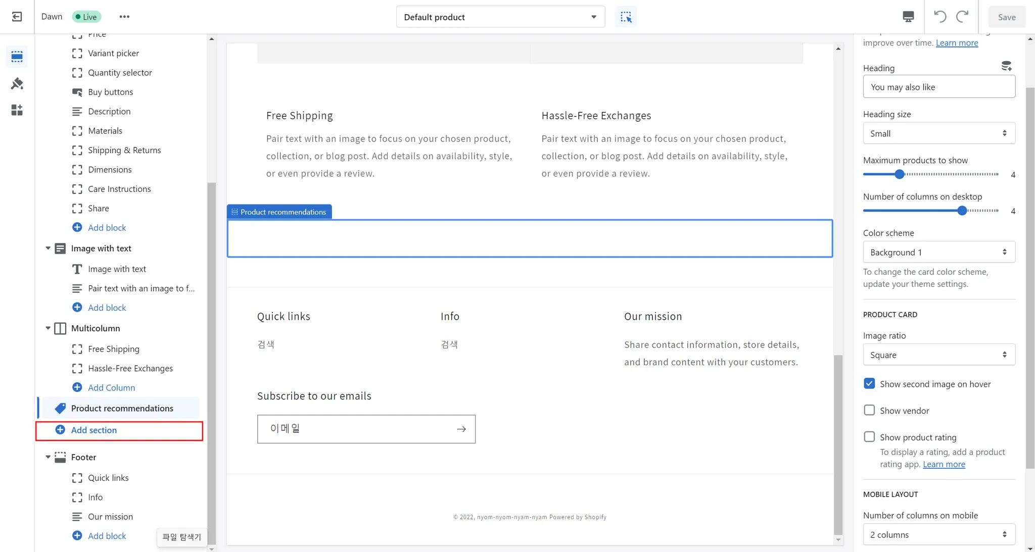 Log in to your Shopify admin and navigate to Online Store → Themes → Customize.