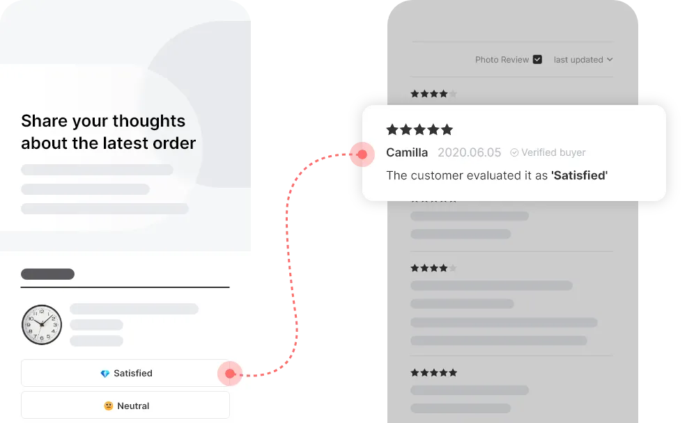 AlphaReview's Quick Review feature is the easiest way for customers to leave a review with just one click. Our review requests include satisfaction buttons, which create satisfaction text when clicked.