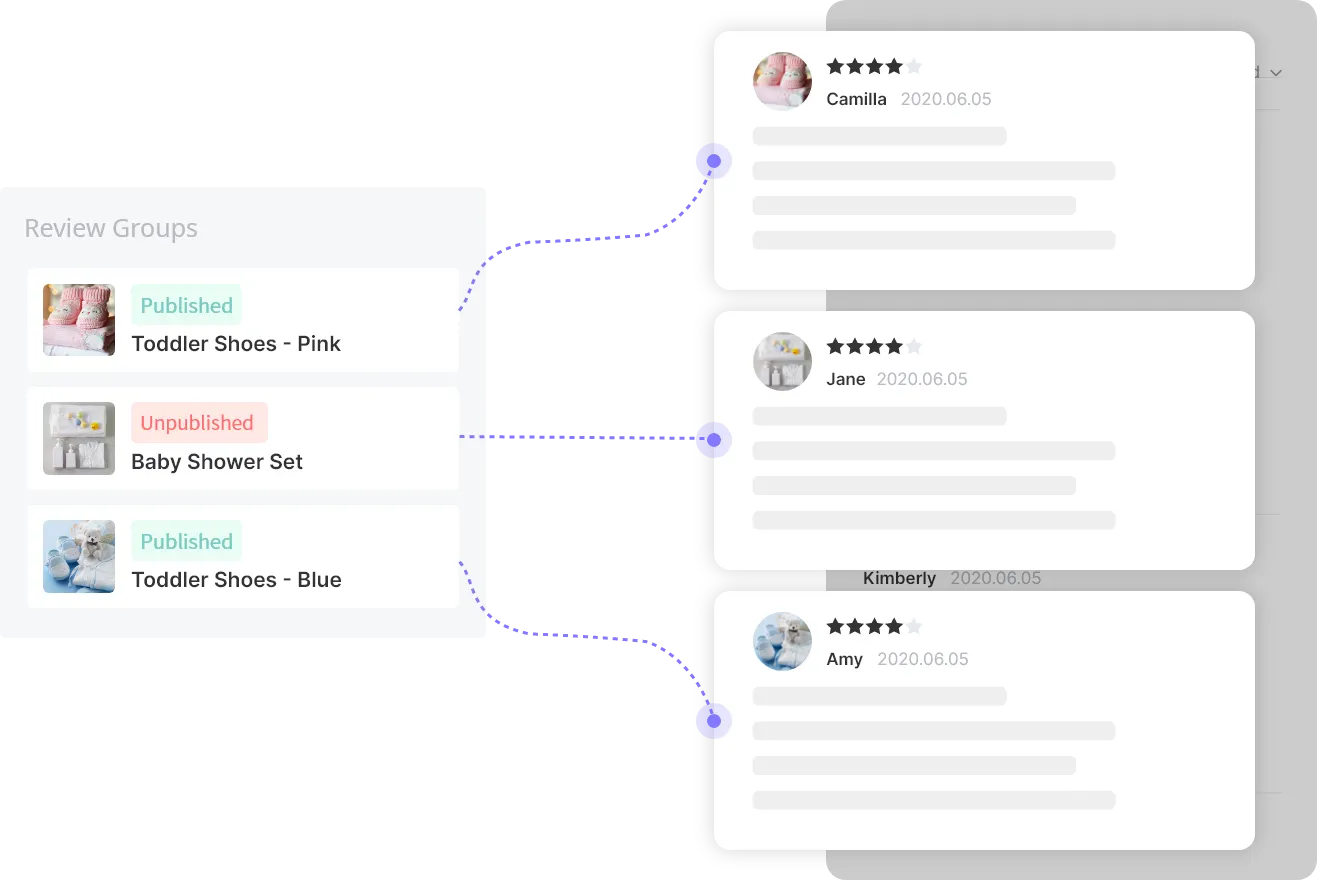 By using this feature, you can showcase reviews that are relevant to a specific group of products, improving the credibility and authenticity of your store. Our easy-to-use group management tool makes it simple to organize and display your reviews.