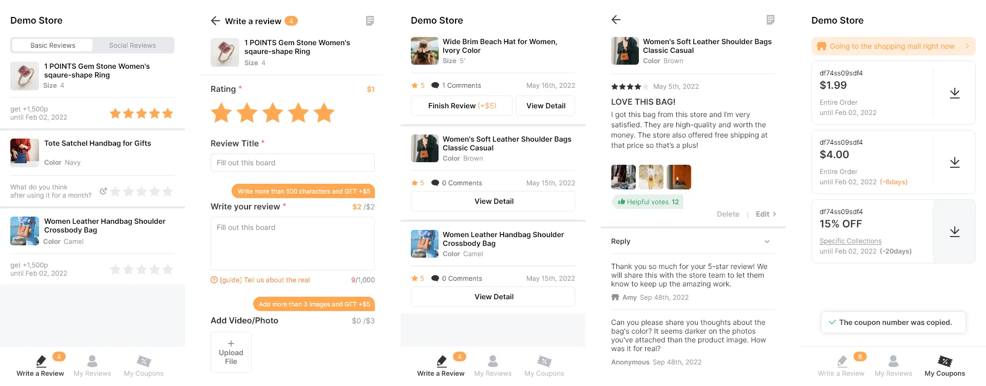Incentivizing is a great way to get more high-quality reviews, and AlphaReview allows you to set reward values differently by customer groups, review types, review quality, and order and product amount range.