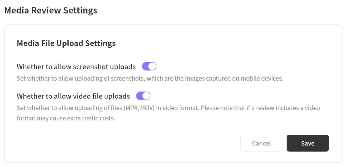 Whether to allow video file uploads: By activating this setting, you get collect video reviews. Please note that displaying media reviews through widgets may cause extra traffic costs.