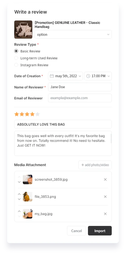 Attach Media Reviews: You can adjust the order of the attached images or videos.