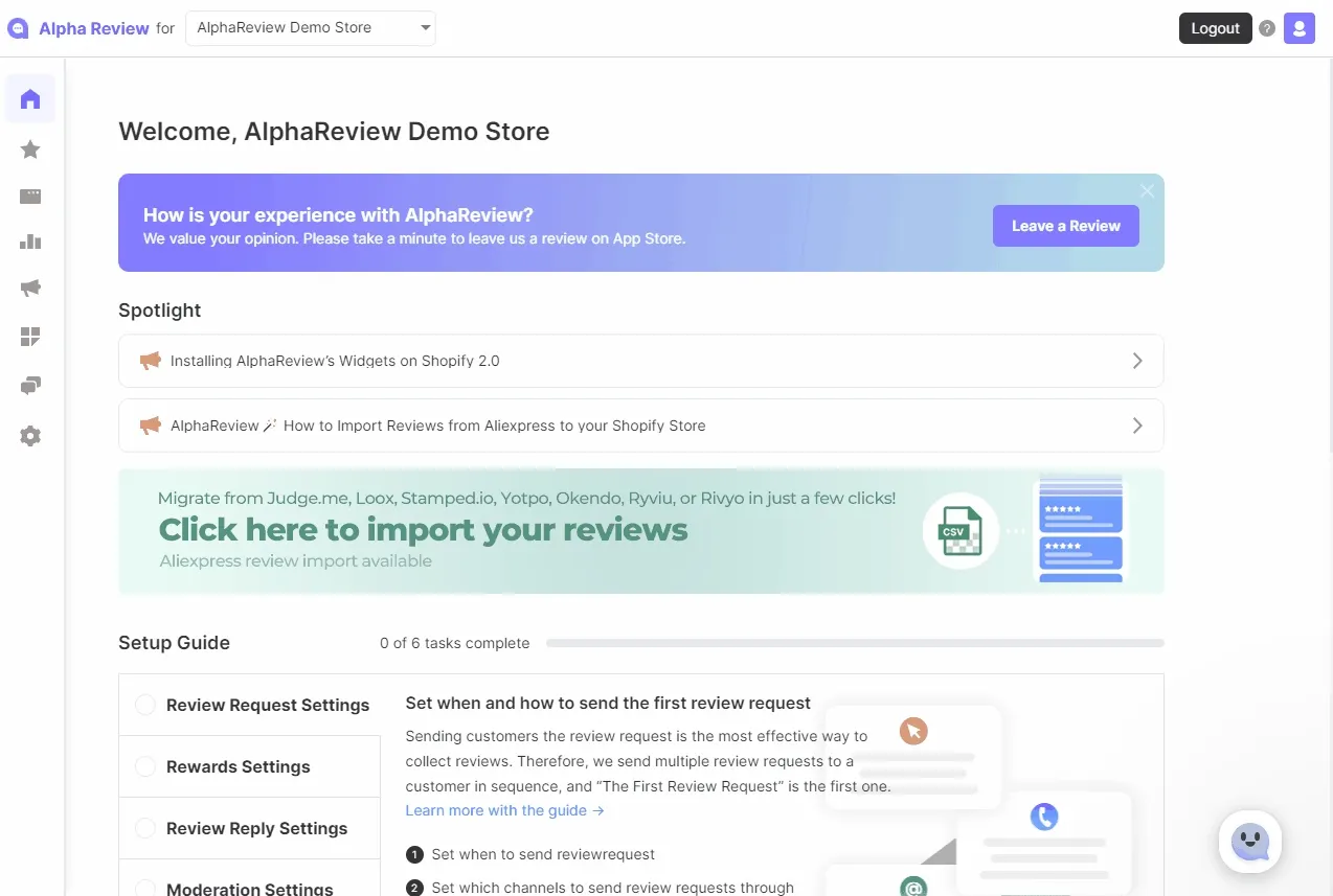 In the App Embeds tab, make sure that AlphaReview Core Script is enabled. This is necessary for the widgets to work correctly.