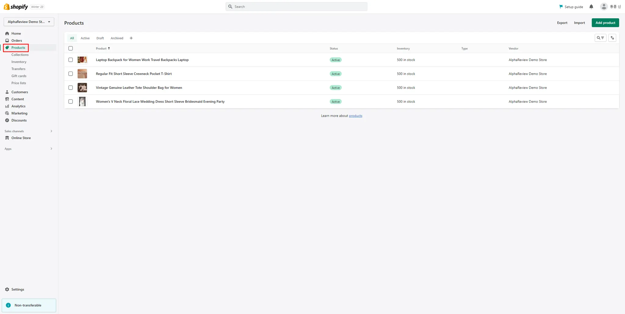 To import reviews into AlphaReview, you must provide the product information in the CSV file. AlphaReview uses this information to identify the product for which the reviews are being imported. Follow these simple steps to locate the product ID and product handle for any product in your Shopify store.