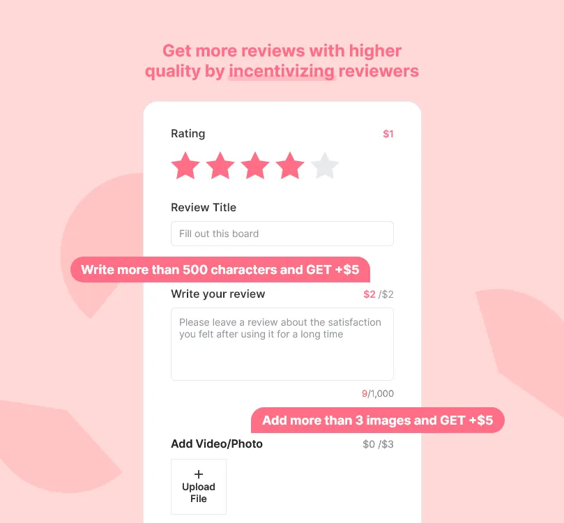 Quality | Photo Review | You can offer additional rewards depending on the number of images in the photo review. |