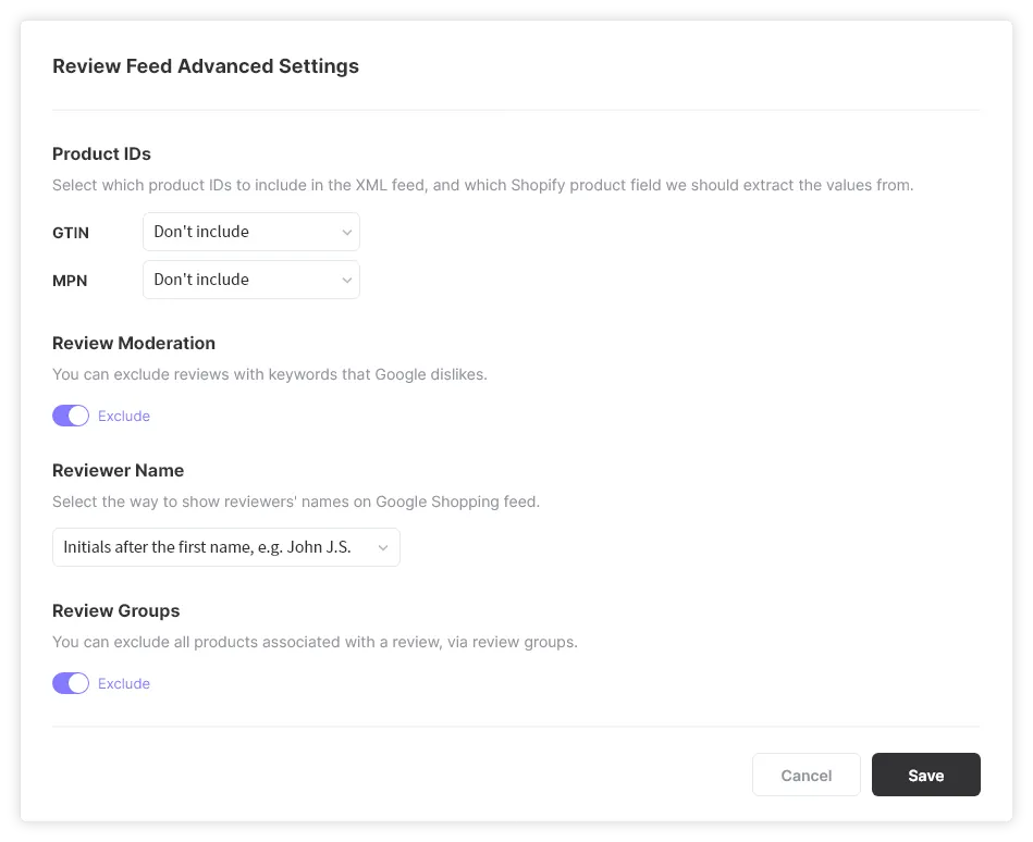 You can customize the review data that is uploaded to Google, so that you can ensure that the information displayed is accurate and relevant to your product.